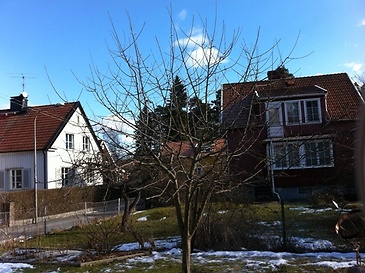 Nu är det beskärningstider igen! Ett äppelträd som det här med lagom mycket tillväxt fungerar bra att beskära nu på vårvintern. En lätt gallring och inkortning av grenar för att trädet ska behålla storleken och formen. Till höger syns trädet innan beskärning.