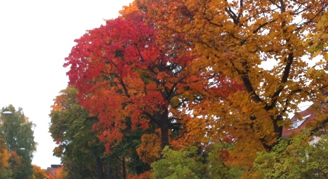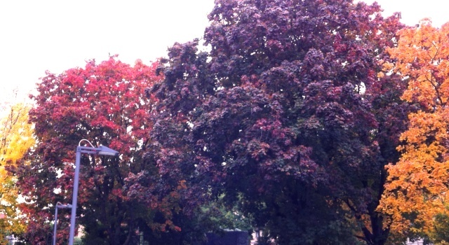 Även lönnar får ofta fina höstfärger - här i fyra olika färger.