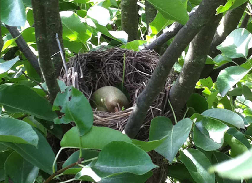 Beskärning på Lidingö i augusti. Fem meter upp i ett päronträd låg den här lilla överraskningen - undrar hur den fågeln såg ut?